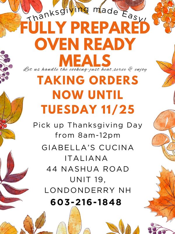 We’re taking orders now through Tuesday, November 25, with Thanksgiving Day pickup from 8 AM to 12 PM right here in Londonderry. Spend less time in the kitchen and more time with the people (and food) you love most!
